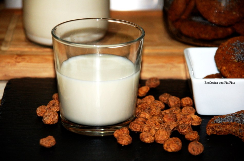 Bueno, pues como mi primera receta publicada fueron las galletas de chufa y plátano, voy a subir la receta de la leche de chufa, que está riquíiiisima, y de la que obtendríamos la pulpa de la chufa para hacer estas galletas.