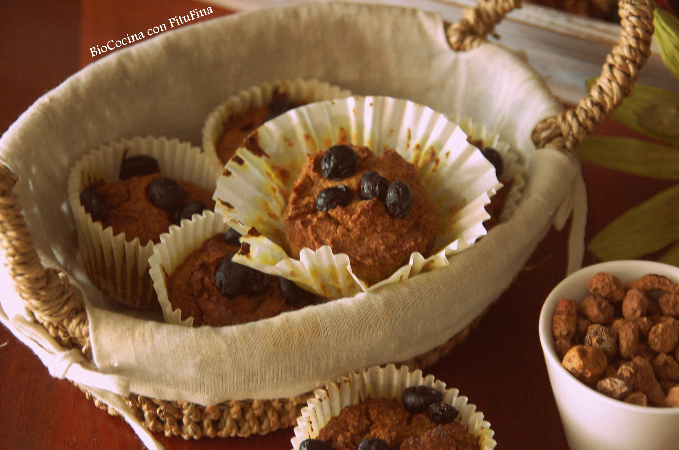 Érase una vez, una pitufa, que prometió publicar la receta de magdalenitas de chufa y lino, después de publicar, la de Don Maki de brócoli, y la de Tableta de 2 chocolates… pero entre medias, se cruzaron en su camino, varias peticiones de batidos verdes, y se lió como una loca a publicar recetas de batidos verdes… que si de plátano, que si de manzana 🍎, de fresas 🍓… Lo mejor de esta historia, es que, lo bueno se hace esperar y siempre llega. Y en este camino, recordó de repente 💡… «ayyyyy, la tercera receta ganadora del concurso que propuse en mi página de facebook (puedes verlo aquí)… aún está sin publicar!!»… y decidida… se puso a manos a la obra 👏 Y aquí está la recetuki!!!! Me perdonáis?? 👼… Una vez que la probéis, seguro que sí!!!! Bravoooo!!!