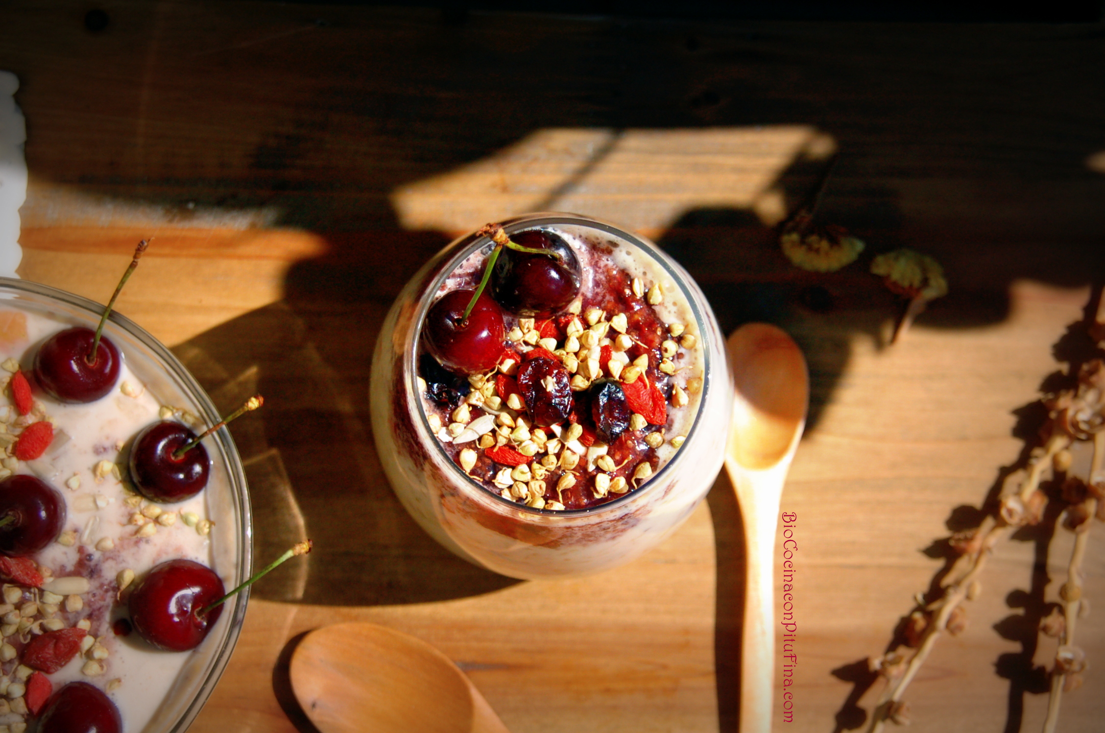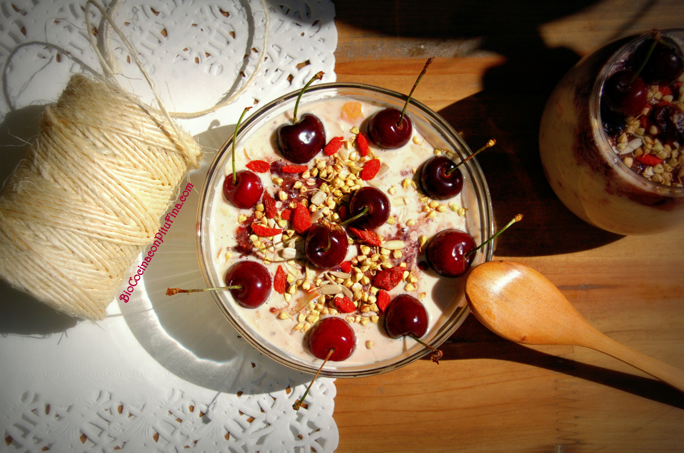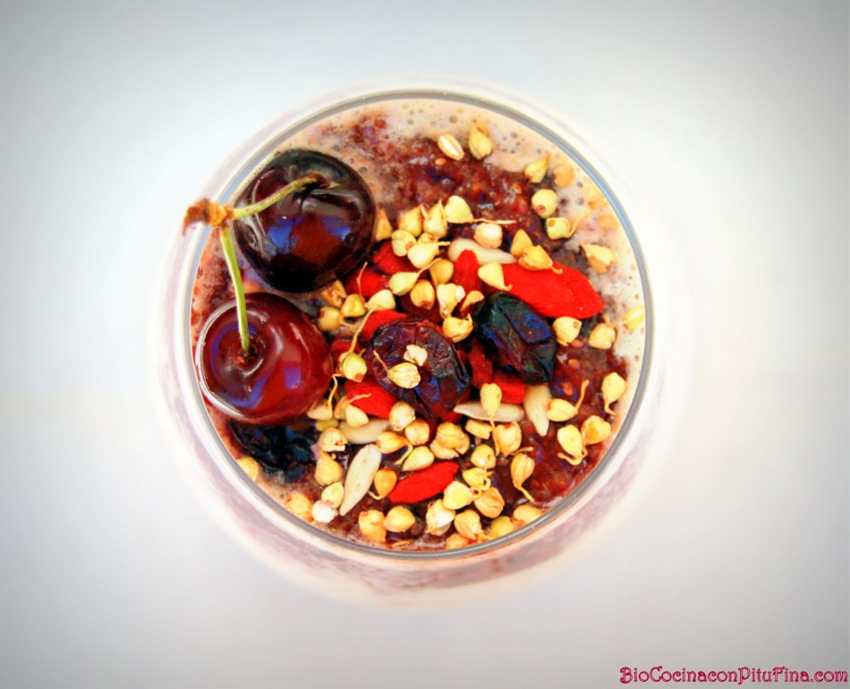 Y bueno, además quería contaros, que siempre os hablo de la combinación de alimentos… que es muy importante para tener buenas digestiones, y evitar males mayores a la larga… Por lo que… en esta receta, se respetan estas reglas… por el motivo siguiente… La leche de almendras combina sin problema con casi todos los alimentos, incluidas las frutas, así que… «vamos ganando 💪»… la manzana es una fruta neutra, y combina con todo… «ooootro puntacooo 💪»… las semillas, como la chía o de girasol, y el trigo sarraceno activado y deshidratado (más abajo os cuento cómo hacerlo), también, en pequeñas cantidades, combinan bien con la fruta… «maaadre mía, qué maquinones somos 💪»… y la fruta que le da el «colej de l’amuj»… es la cerezuquiiiiiii junto con los arándanos secos, y las bayas de goji!!! WE AAAAARE THE CHAMMMPIOOOONS, MY FRIENDDDSSS🏆!!! Hemos ganado a la combinación de alimentos… por goleada! Si es que… no nos besamos porque no llegamos, pero por eso, os mando yo los besos 💋💋💋