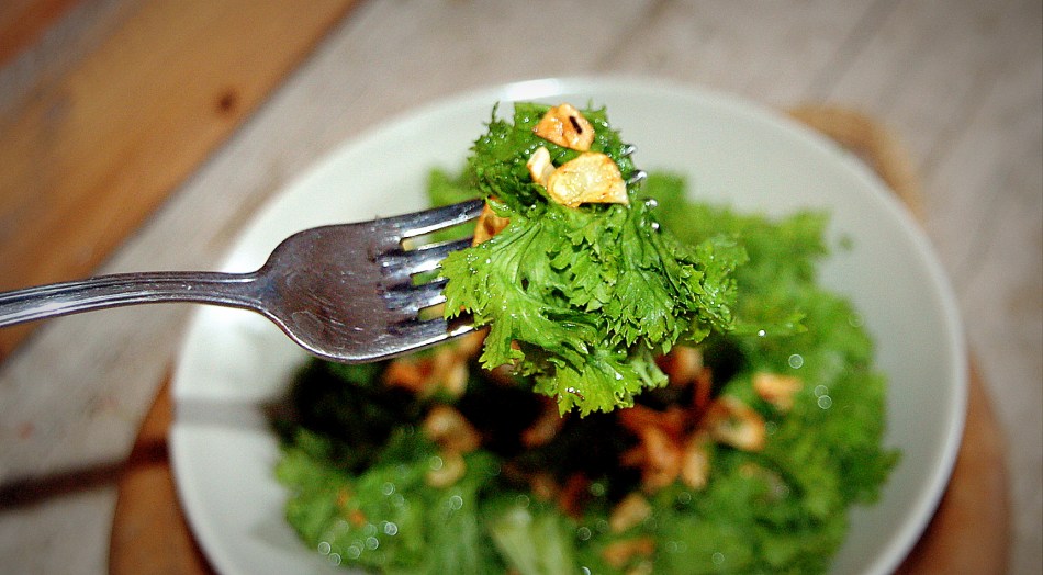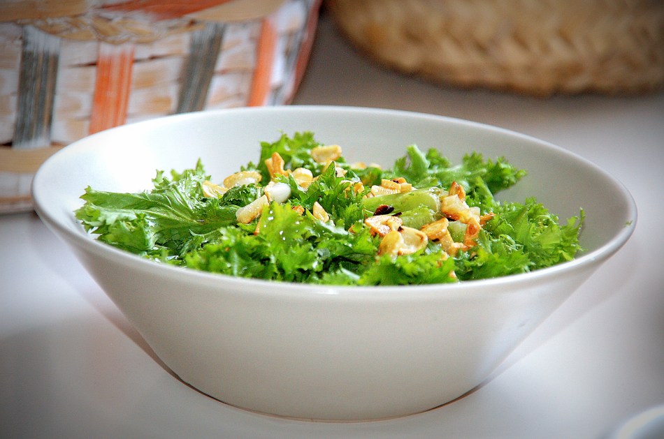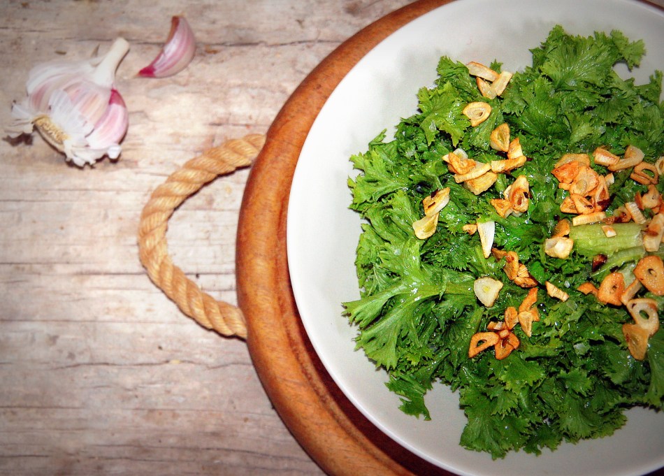 ENSALADA DE WASABINA (O ESCAROLA) CON AJILLOS FRITOS