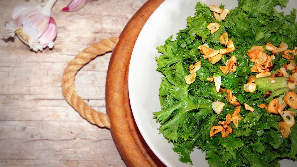 Ensalada de Wasabina (o Escarola) con Ajillos Fritos